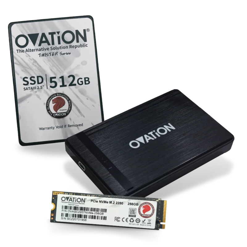 OVATION uses all TOP brand components to achieve highest performance and quality. with capacity from 128GB -Â 1TB