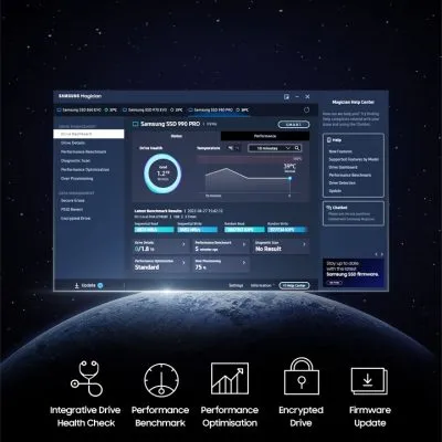 Samsung Magician software's user-friendly suite of optimisation tools always gets you the best SSD performance. Protect data, get firmware updates and monitor the drive’s health.