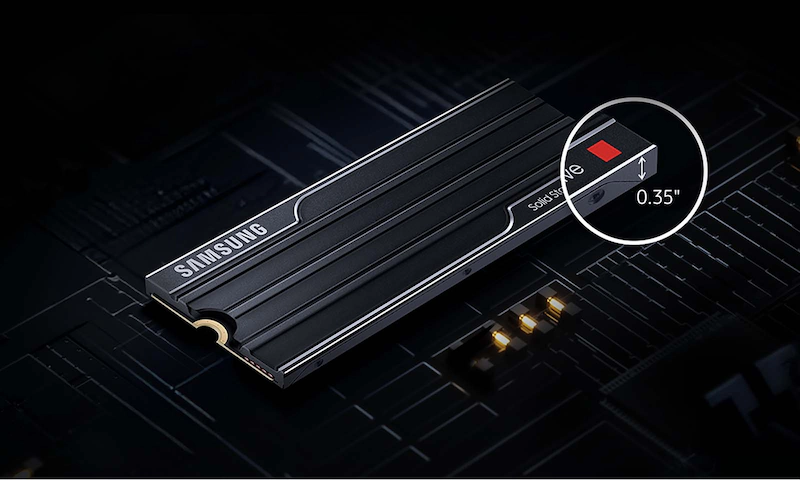 Super slim fit. 9100 PRO with Heatsink boasts an incredibly thin 8.8mmT body, compatible with PlayStation® 5, PC, and on laptops, meeting PCI-SIG® D8 specs. Overcome space limits and get ultimate design flexibility to build your most efficient, high-performance system, with the compact M.2 form factor.